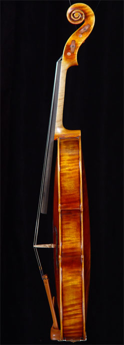 Visually striking, and tonally superior, for the artist player looking for an exceptional instrument. Available to either Guarneri or Stradivari model, and made with highly figured maple and choice spruce. Great workmanship, with rich and carrying sound. The Guarneri model has a slightly darker tone. Fine quality varnish and fittings. Size available 15" - 16 1/2".