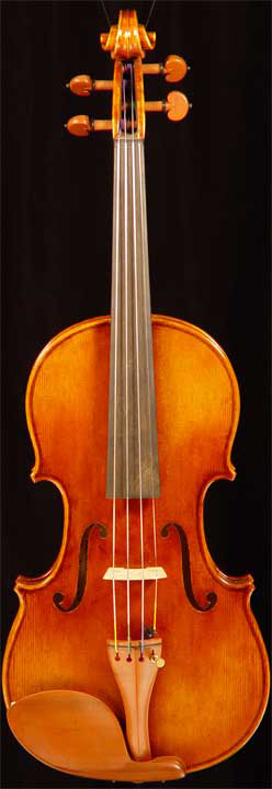Visually striking, and tonally superior, for the artist player looking for an exceptional instrument. Available to either Guarneri or Stradivari model, and made with highly figured maple and choice spruce. Great workmanship, with rich and carrying sound. The Guarneri model has a slightly darker tone. Fine quality varnish and fittings.