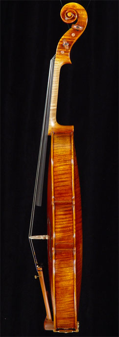 These are extra effort violas, made to be as nearly unsurpassable as human skill and craftsmanship can create. The spectacularly European figured maple and European choice spruce, with fine fittings and beautiful varnish (antique style) create a visual delight indeed, and the sound is splendid. Available in Stradivari models, for the concert artist or professional, these are wonderful instrument at great prices. With five stars indicated all European tone wood is used for this model. Size available 15" - 16 1/2". |
